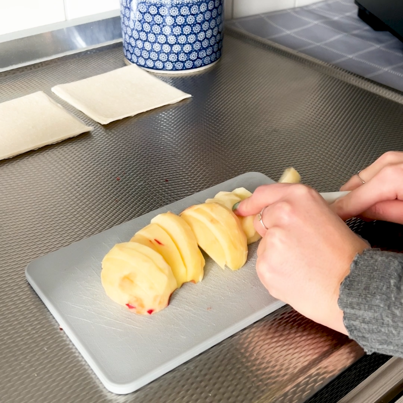 - Laat het bladerdeeg 10 minuten ontdooien op je keukenblad.