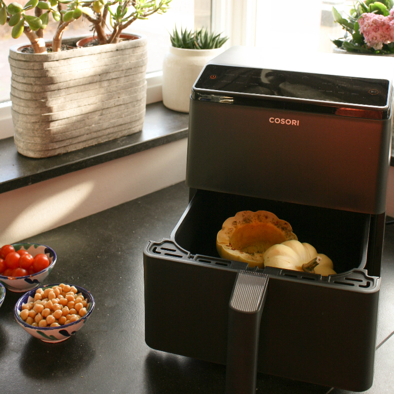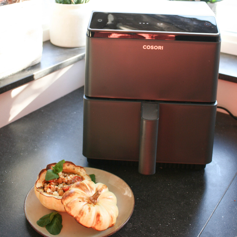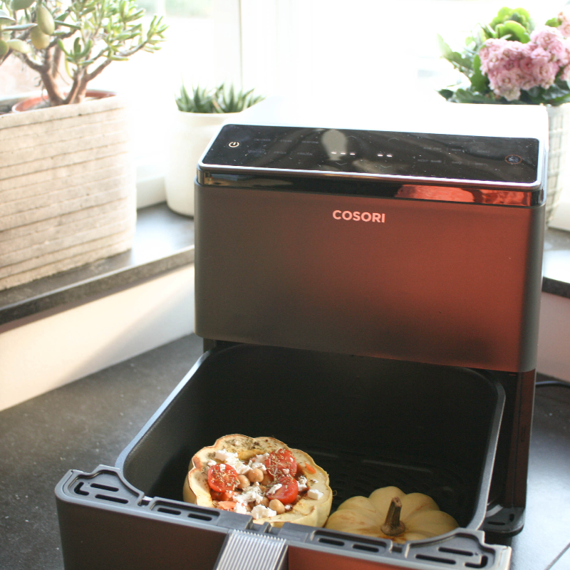 - Zet het pompoentje in de airfyer en bak voor 8 minuten op 200 graden op de Veggies-stand.