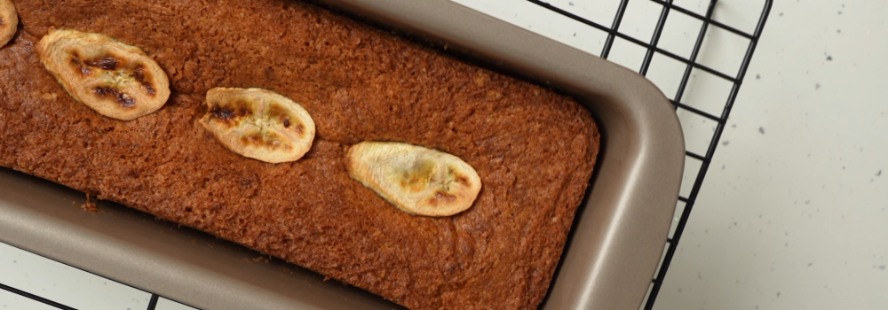 Laat het brood 10 minuten afkoelen in de vorm, haal het daarna uit de vorm en laat het volledig afkoelen op een rooster voordat je het serveert.