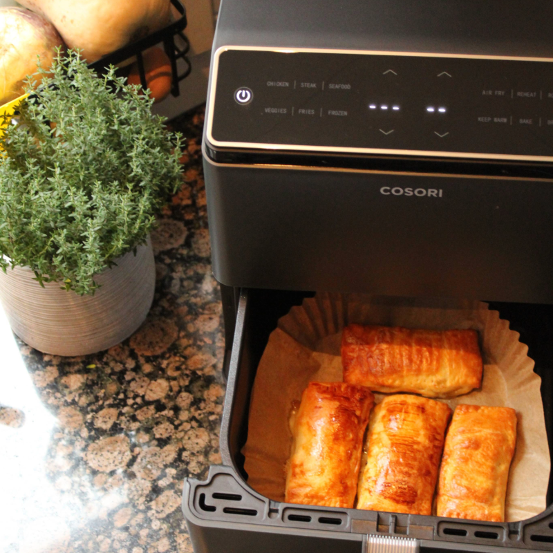 - Leg wat bakpapier op de crisp plaat, plaats de broodjes hierop en plaats deze in de airfryer.