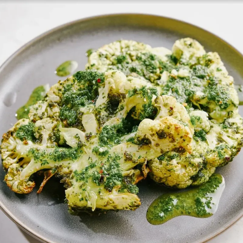 Borstel de overgebleven chimichurri over de bloemkool steaks en serveer direct!