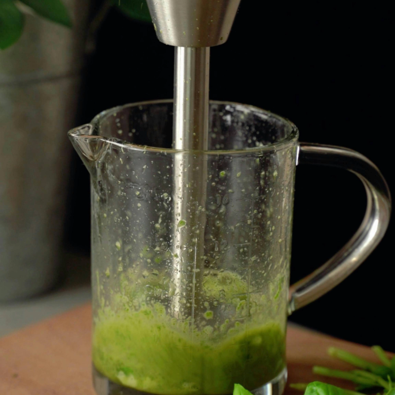 Meng alle ingrediënten (behalve de bloemkool) in een blender of met een staafmixer totdat alles goed door elkaar gemixt is. De mix hoeft niet helemaal glad te zijn en mag nog wat stukjes bevatten.