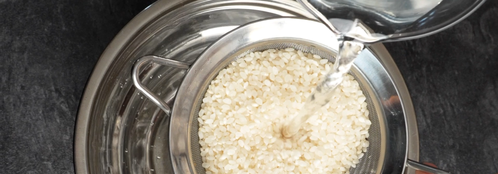 Spoel de rijst onder koud water tot het water helder is.