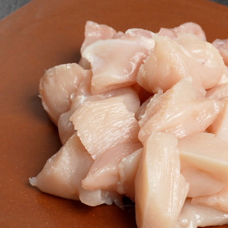 Snijd de kipfilet in hapklare stukjes.