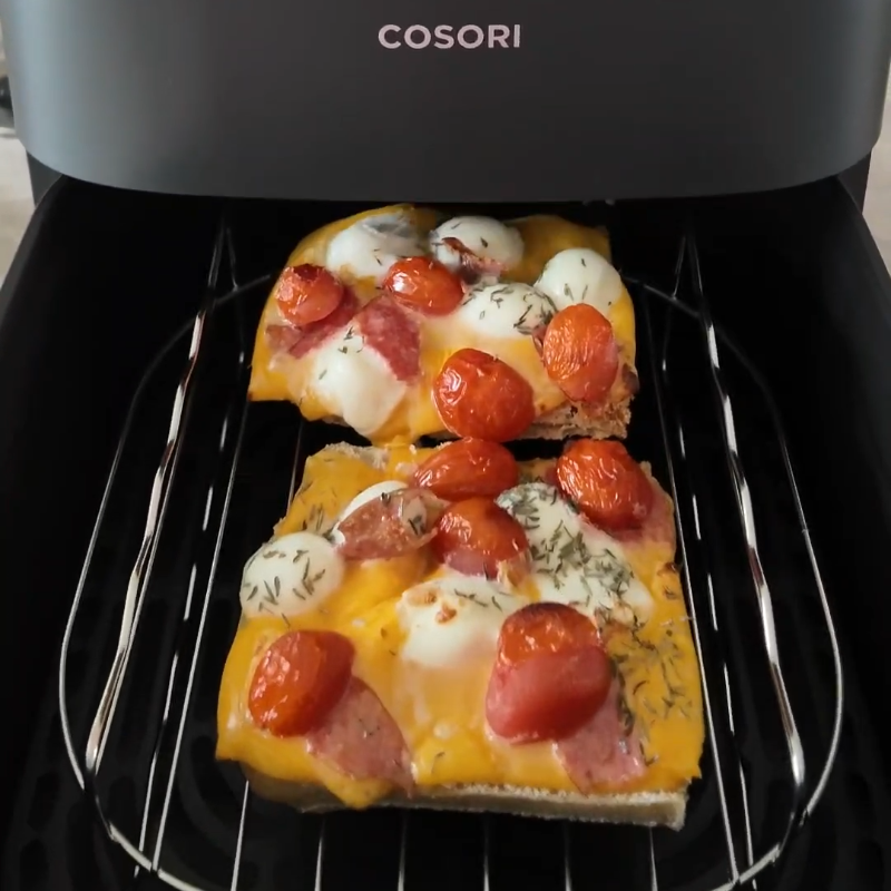Stel de airfryer in op de "Airfry" stand: 200graden voor 3 minuten. Je broodjes zijn klaat wanneer de kaas gesmolten is. Tip: Gebruik het grillrekje om de onderkant van de broodjes lekker krokant te krijgen!