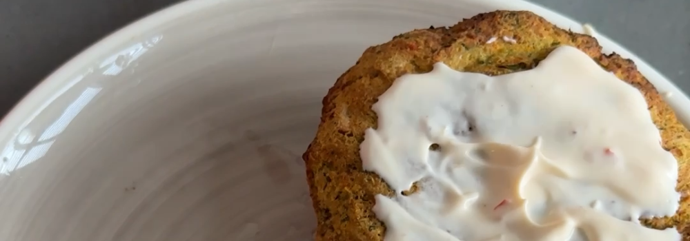 Meng ondertussen de yoghurt, limoensap en pittige saus in een kommetje. Roer goed door.