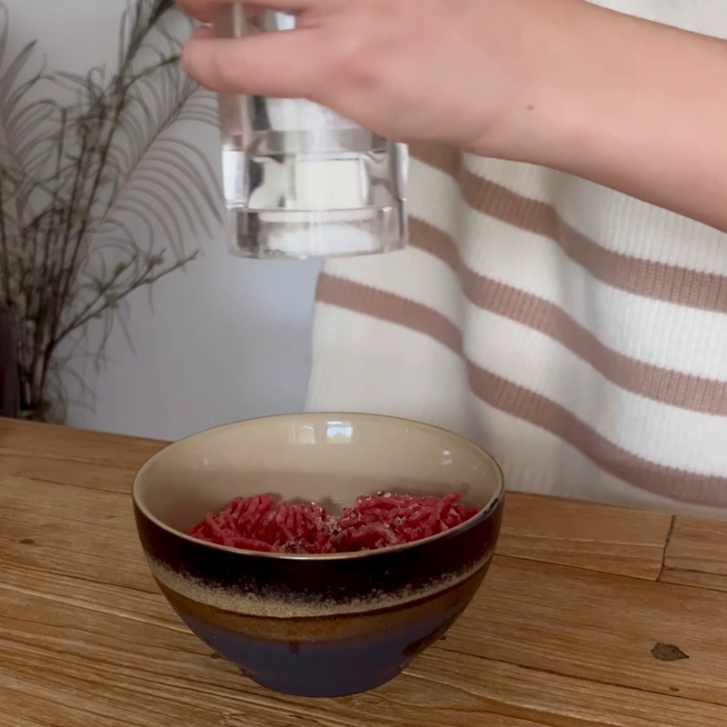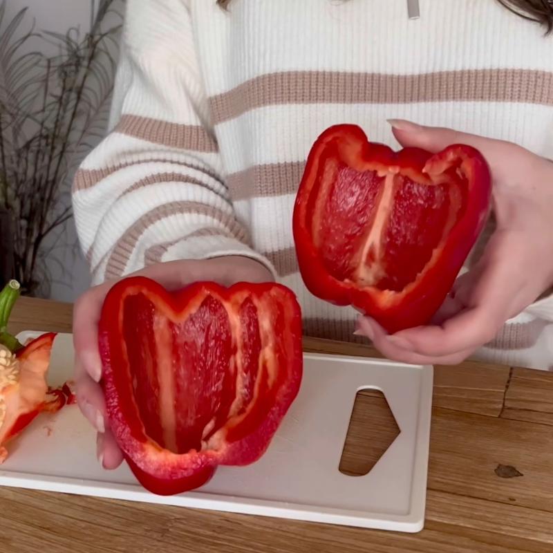 Verwijder de zaadlijsten. - Kruid het gehakt met peper en zout naar smaak.
