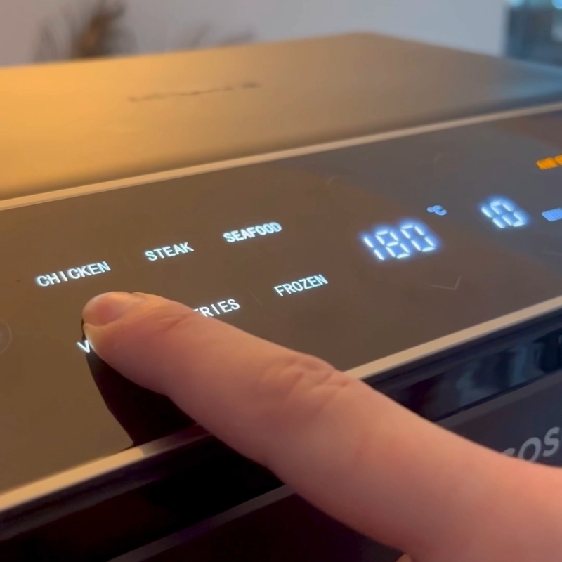 - Kies de “Veggie” stand van jouw airfryer. Deze zal zichzelf automatisch instellen op 195 graden voor 6 minuten.