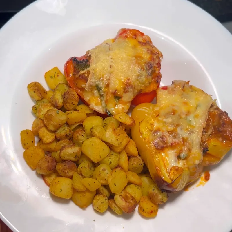 - Dien de krieltjes samen met de gevulde paprika's op en eet smakelijk!