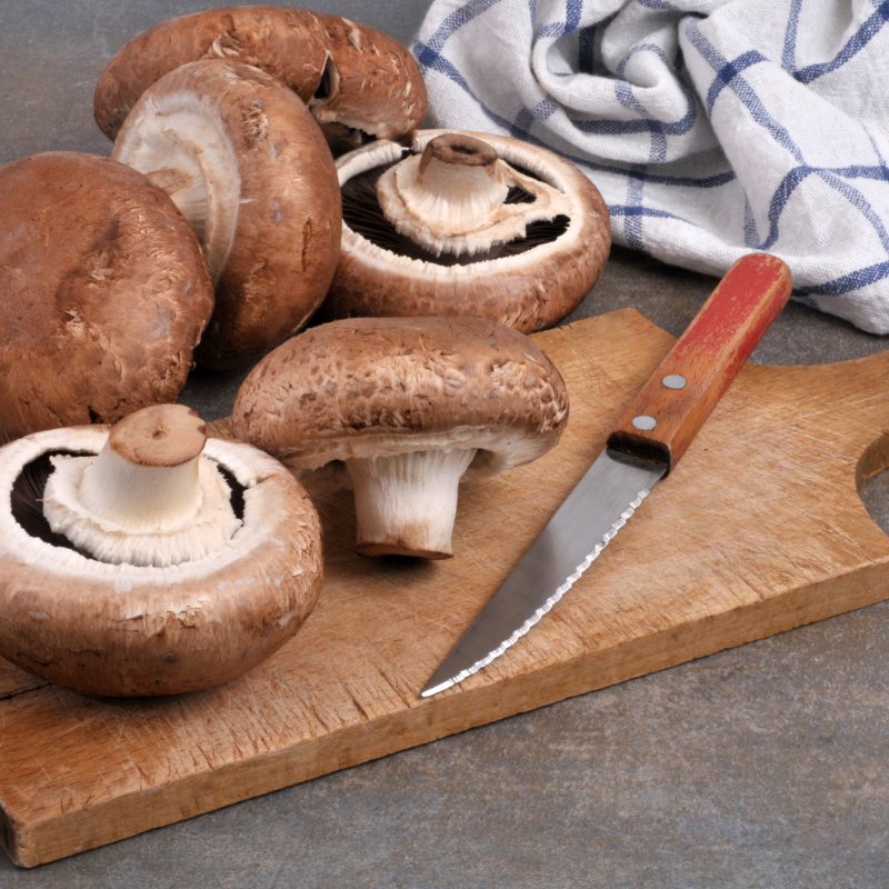 Snijd de paddenstoelen in repen van ongeveer een halve cm.