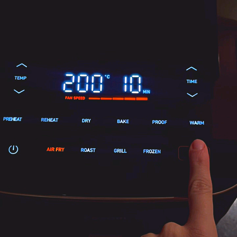 Bak de kip in de TurboBlaze. Stand Airfry, 200 graden voor 10 minuten.
