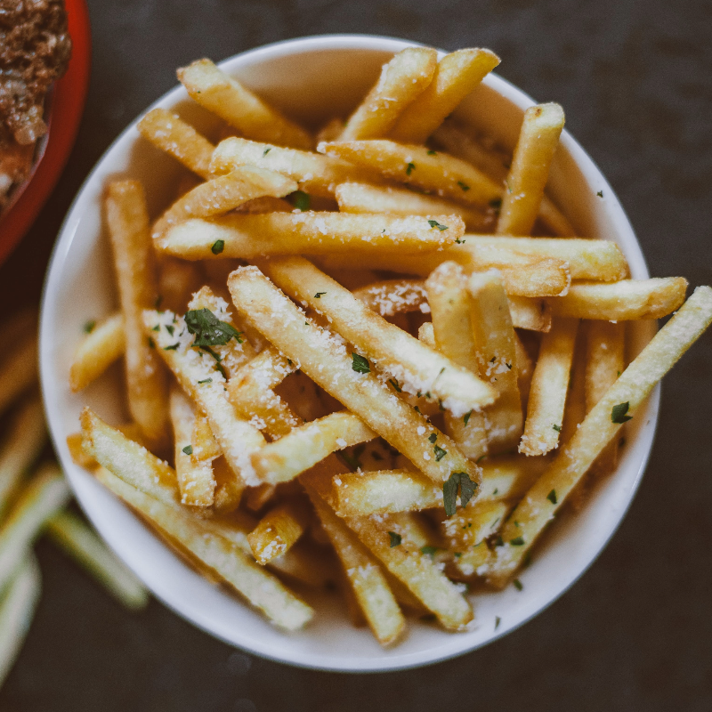 Wanneer de frietjes klaar zijn doe je ze in een kom.